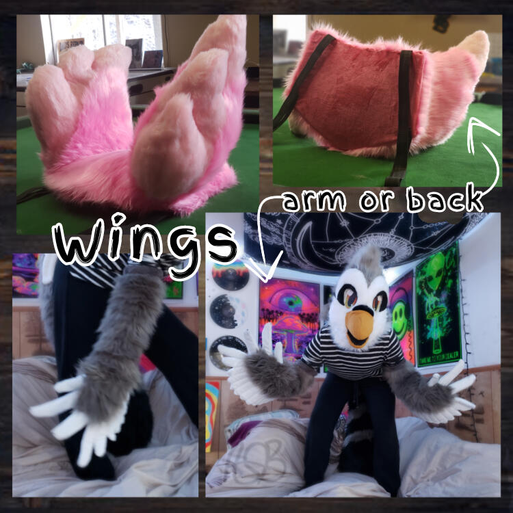 Starting prices for all Paws, wings and arm sleeves is 1 colour fur and 1 colour minky (if applicable).-hand and feet paws come lined by default.